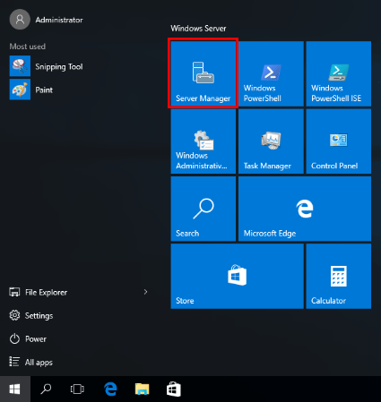 - Open Server Manager, this can be found in the start menu. If it’s not there simply type “Server Manager” with the start menu open and it should be found in the search.